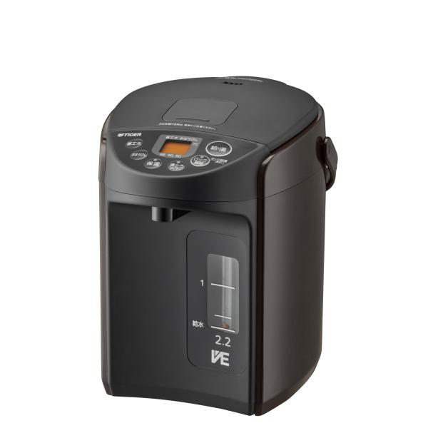- 商品説明 タイガー 電気ポット おすすめポイント 1)かしこく使える多彩な節電メニュー ・省エネコース ほしい温度がすぐに沸くので時短&節電に◎ ・まほうびん保温 電気を使わないで高真空2重瓶(VEまほうびん構造・ステンレス製)の容器の保温力で保温します。 (時間経過とともに冷めていきます。) 2)沸くまで何分表示機能 お湯が沸くまでの残り時間の目安を一目で確認することができます。 3)給湯スピード切替 コーヒーをいれるなら、味わい深いコクと香りを出す「ゆっくり給湯」で。 調理用や下ごしらえに必要な量をすばやく「たっぷり給湯」。 仕様 機種名 【2.2L】:PIQ-N220 【3.0L】:PIQ-N300 色柄 (T)ブラウン 本体サイズ(約)(幅×奥行き×高さ) 【2.2L】:21.9×28.3×25.4cm 【3.0L】:21.9×28.3×29.4cm 本体質量(約) 【2.2L】:2.5kg 【3.0L】:2.7kg 定格容量(約) 【2.2L】:2.2L 【3.0L】:3.0L 湯わかし時の消費電力 【2.2L】:700W 【3.0L】:700W 年間消費電力(※1) 【2.2L】:261kWh/年 【3.0L】:302kWh/年 1日当りの消費電力(※1) 【2.2L】:0.72kWh/日 【3.0L】:0.83kWh/日 年間電気代(約)(※1) 【2.2L】:8100円 【3.0L】:9400円 電源 100V 50/60Hz コードの長さ(約) 1.0m ※1 日本電機工業会自主基準による測定(室温23度、湯わかし2回/1日、再沸とう1回/1日、保温90度で23時間/1日、365日/年間、その他水量等の試験条件:日本電機工業会自主基準HD-112に基づく)。特定地域(高地・厳寒地など)においては、所定の性能が確保できないことがあります。 *プラグを抜くと時間経過とともに冷めていきます。VEは、Vacuum(真空)+Electric(電気)の略称です。 *操作キーがロック(出ない)状態になっていても、本体を傾けたり倒すと注ぎ口や蒸気孔からお湯が流れ出てやけどのおそれがあります。