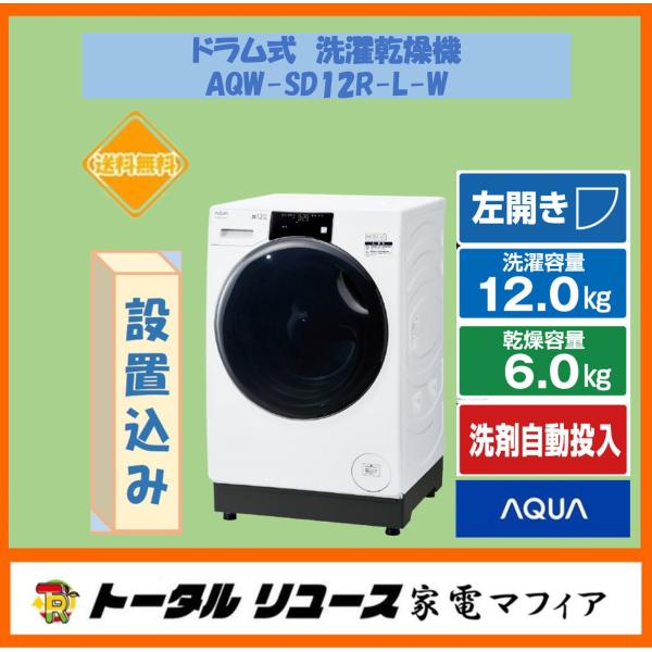 洗濯機 アクア 洗濯12.0kg ドラム式 左開き まっ直ぐドラム ヒートポンプ 乾燥 一人暮らし 新生活 AQW-SD12R-L-W アウトレット