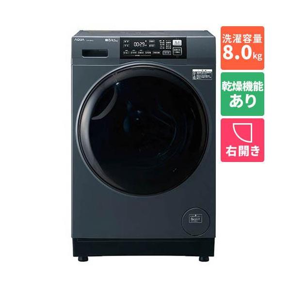 【標準設置料金込】アクア(AQUA) AQW-D8A-R-K サファイアブラック まっ直ぐドラム コンパクト大容量 ドラム式洗濯乾燥機 右開き 洗濯8kg/乾燥4.5kg