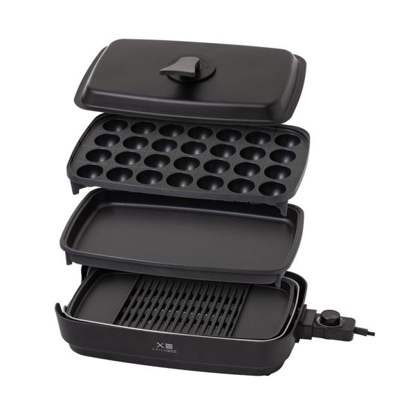 - ◇◇ 【特長】 ●「“Xカット構造”の焼き肉」「極みのたこ焼き」「平面」の3枚プレートがついたホットプレートです。 【仕様】 ●本体サイズ:幅44×奥行27×高さ16.5cm ●電源:AC100V(50/60Hz) ●消費電力:1300W ●電源コード長:2.2m ●温度調節範囲:80度(保温)〜230度 ●バイメタル式サーモスタット搭載(可変式) ●着脱式プレートでお手入れ簡単 ●温度調節はダイヤル式 ●プレート3種:平面/焼き肉/たこ焼きプレート ●焼き肉プレートは独自のXカット加工を施したプレートで調理時の煙を削減 ●焼き肉プレートなら調理中の油の飛散も油落ちを促進して削減 ●たこ焼きプレートは極のたこ焼きプレートを採用の為、大玉のたこ焼きが作れます ●蒸し焼きに便利なフタ付き ●フタは卓上でも省スペースになる自立する仕様 ●プレート、水トレイ、フタは丸洗い対応 ●付属品:平面プレート/焼き肉プレート/たこ焼きプレート/フタ/取っ手/水トレイ ●メーカー保証:1年間