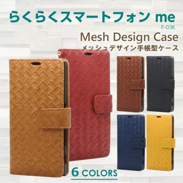 らくらくスマートフォン me ケース F-03K スマホケース メッシュ 手帳型ケースらくらくスマホ ミー らくらくスマートフォン F-03K ケース カバー