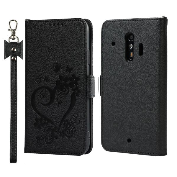 らくらくスマートフォンme F-01L カバー らくらくスマートフォン F-42A ケース 手帳型 リボン ハート プリント ストラップ スタンド カード ポケット 耐衝撃