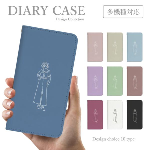 スマホケース らくらくフォン me F-03K 手帳型 韓国 可愛い 女の子 イラスト 線画 落書き くすみカラー