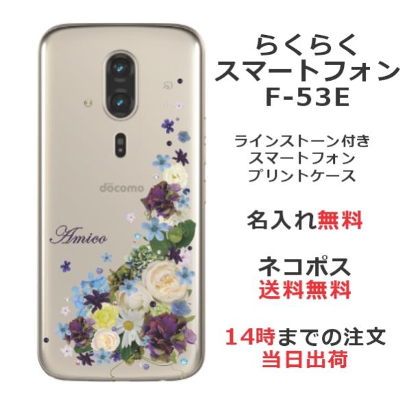 らくらくスマートフォン F-53E らふら 名入れ スマホケース ラインストーン スマホカバー 押し花風 ナチュラルフラワー