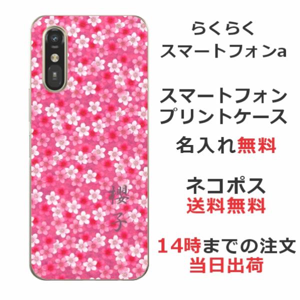らくらくスマートフォンa A401FC らふら 名入れ スマホケース 和柄 桜ピンク