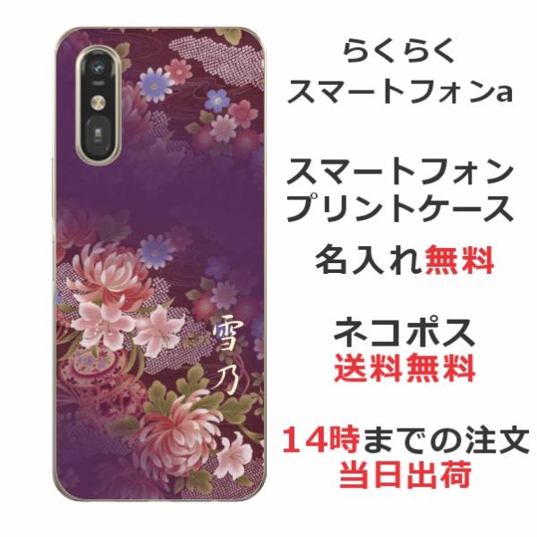 らくらくスマートフォンa A401FC らふら 名入れ スマホケース 和柄 和花紫桃グラデ