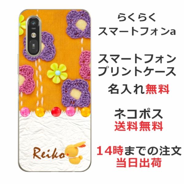 らくらくスマートフォンa A401FC らふら 名入れ スマホケース キルトフラワーオレンジ