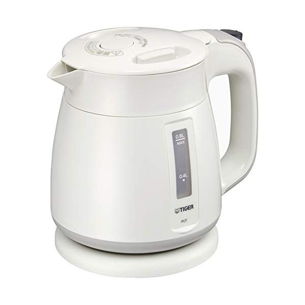 タイガー魔法瓶(TIGER) 電気ケトル 湯沸かし わく子 0.8L 転倒お湯漏れ防止 カラ炊き防止 ホワイト PCF-G080-W