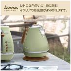- 1950年代のイタリアのレトロ感を融合させて。アイコナ ヴィンテージコレクションの電気ケトル。■コンパクトながら容量1.0Lと家族にちょうど良いサイズ 最少200mL〜最大1L容量で、欲しいときに欲しいだけ沸かして経済的。■高級感と耐久性・堅牢性を兼ね備えたメタルボディ 本体にはステンレスを使用。高級感と耐久性を兼ね備えております。■ふたの間口が広くてお手入れも簡単 広口タイプで中まで洗えます。注ぎ口のフィルターは埃の侵入などを防ぎ、取り外し可能なのでお手入れも簡単。■見やすい水量計 0.5L、0.75L、1.0Lの3段階の目盛が付いた水量計が取っ手側にあり、注水量が一目で確認できます。■自動電源オフ、空だき防止機能付き 沸き上がり時やケトルを電源ベースから持ち上げた時、自動的に電源オフ。空だき防止機能付きです。■大き目のカップ1杯=200mLが約85秒で沸騰