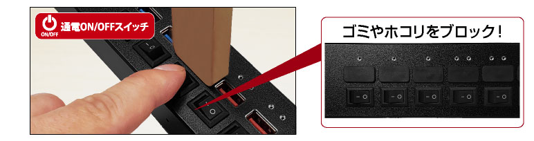 - 通電用ON/OFFスイッチ:未使用時の待機電力をカットし、経済的かつエコ。