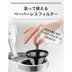 洗って使えるペーパーレスフィルター使用。ペーパーレスフィルターならコーヒー油分を逃さず抽出が可能なため、よりアロマを逃さず抽出することができます。