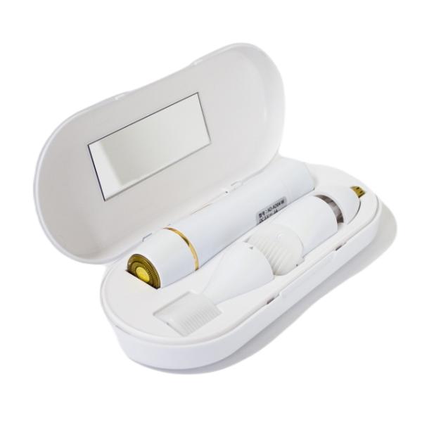 - 【アデランス ビューステージ オールインワンシェーバー】携帯充電式多機能高級仕様シェーバー!用途別対応の全4種アタッチメント搭載(Wネット刃・眉用・トリマー刃・鼻用刃)したシェーバーです。剃りたい部分に応じてアタッチメントを使い分けできます。皮膚接触部位すべて金メッキ仕様。■本体サイズ:約幅29mm×奥行28mm×高さ119mm ※ネット刃装着時■本体重量:約63g(アタッチメント含めず)■材質:本体/ABS樹脂 刀/ステンレス合金■バッテリー性能:ニッケル水素充電池(内臓) DC1.2V 700mAh■充電時間:満充電 約2.5時間 USBタイプA:(DC 5V=1A)■動作可能時間:約30分■使用環境温度:+5℃〜+40℃■保存環境温度:0℃〜+40℃■防水性能:IPX5■メーカー名:株式会社アデランス【関連キーワード】眉毛 フェイスシェーバー 鼻毛 シェーバー 鼻毛カッター 鼻毛処理 眉毛カッター フェイス 顔 処理 ワキ毛 脇毛 まゆ毛 体のムダ毛 ムダ毛カッター まゆ毛カッター 眉 襟足 えりあし 手 足 全身 ムダ毛ケア Vライン 携帯 充電式 母の日 父の日 敬老の日 誕生日 プレゼント ギフト 贈り物 用品 グッズ アイテム 送料無料 おすすめ 人気 通販 販売