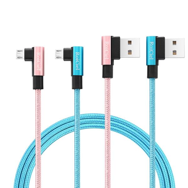 - 【2本セット】RoiCiel Micro USB ケーブル L字型 【急速充電・高速データ転送対応】Galaxy Xperia Android 各種 その他USB機器対応 HUAWEI、Galaxy、ASUS、AQUOS、Xperia、Nexus、Moto、Kindle、PS4、Xbox、Echo Dot Android micro(ブルー/ピンク)マイクロ USB ケーブル