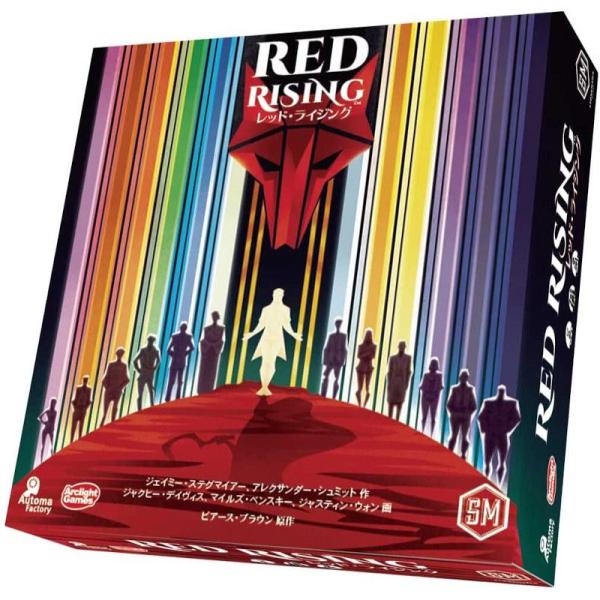 - プレイ人数 :1-6人プレイ時間 :45-60分対象年齢 :14才以上本体サイズ :297×297×71mm数々の名作を手掛けたゲームデザイナー、ジェイミー・ステグマイアー作、 ディストピアSF小説「レッド・ライジング」を原作としたボードゲームが登場。 階級に支配されたディストピア世界で、支持者や優秀な仲間たちを集めて、頂点を目指せ。 本作は、ディストピア世界で繰り広げられる権力闘争で勝利を目指すセットコレクションゲームです。 14種類あるカードの色は階級を表しており、それぞれ「特色」を持っています。 最上級のゴールドは単独で高得点をもたらしますが、他を信用しないためかデメリットを抱えています。 逆に最下級のレッドは単独ではほとんど得点になりませんが、多く集めることで凄まじいコンボを狙うことができます。 どのカードを揃えることを目指すのか、それとも資源獲得に集中するのか、勝ち筋が豊富な一作となっています。 使用する112枚のカードは、1枚とて同じカードはないユニーク仕様。 1人で遊べるオートマルールも付属しています。 プレイ人数:1-6人 プレイ時間:45-60分 対象年齢:14歳以上 ゲームデザイン:Alexander Schmidt、Jamey Stegmaier 原題:Red Rising [セット内容] ヘリウムトークン:60個 影響力トークン:60個 艦隊トークン:6個 スタートプレイヤートークン:1個 帝位トークン:1個 派閥タイル:6枚 ゲーム盤:1枚 スコアシート:1束 ライジングダイス:1個 ルール説明書:1冊 オートマルール説明書:1冊 キャラクターカード:112枚[カードサイズ:65mm×100mm] 早見表カード:6枚[カードサイズ:65mm×100mm] ソロルール用カード類:30枚[カードサイズ:57mm×87mm(25枚),65mm×100mm(5枚)]