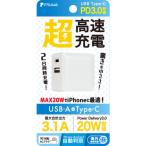 イツワ商事 MCAC2003WH PD20W対応 TYPE-C1ポート/USB1ポート AC充電器 コンパクトタイプ 計3.1A 白