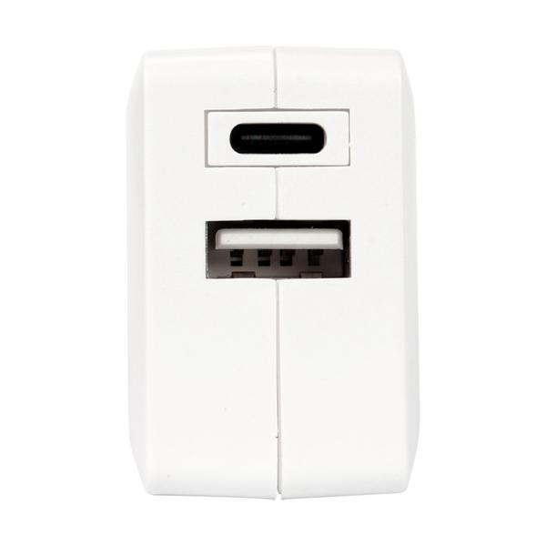 - [イツワ商事 PD20W対応 TYPE-C1ポート/USB1ポート AC充電器 コンパクトタイプ ホワイト MCAC2003WH [MCAC2003WH]] の商品説明【40mm×40mmの超小型サイズ!】 ●2ポートのUSB充電ポート(USB-Aメス x1、Type-Cメス x1 合計3.1A) 電源タップです。高速充電規格Power Delivery3.0(以後PD3.0)に対応したType-Cポートが1つ、端末に応じて高速に充電できる自動識別IC搭載のType-Aポートが1つがあります。 スマホ(携帯)、iPad、モバイルバッテリー、ワイヤレスイヤホン、ポケットWIFIなど一度に充電できます。PDに準拠した5V〜12V程度まで電圧が可変されます。●【Power Delivery 3.0で高速充電】 20WのUSB-C(PD3.0)電源アダプタが搭載しております、端末側が「PD充電」に対応したスマホあれば、上限いっぱいの速度で高速充電できます。この電源アダプタはあらゆるType-C対応デバイスとの互換性があり、20WのPDは急速充電に対応するiPhone8以降のモデルにピッタリ。 それ以上の出力、例えばPD対応するアダプターでも実際に充電時には9V/2Aの範囲に抑えられます。つまり最大出力27W、30W、45Wや60W対応のアダプターを使用しても、より早く充電できるわけではないです。iPhone以外にAndroidのスマホなど充電することもできます。[イツワ商事 PD20W対応 TYPE-C1ポート/USB1ポート AC充電器 コンパクトタイプ ホワイト MCAC2003WH [MCAC2003WH]]のスペック●USB充電口2ポート、最大電流合計3.1A(TypeCポートのみを使用時にPD20W出力)●USBポート:USB-Aメス×1、TypeCメス×1●入力:AC 100V-240V 50/60Hz●出力:Type-C(PD) 12V 1.67A○返品不可対象商品