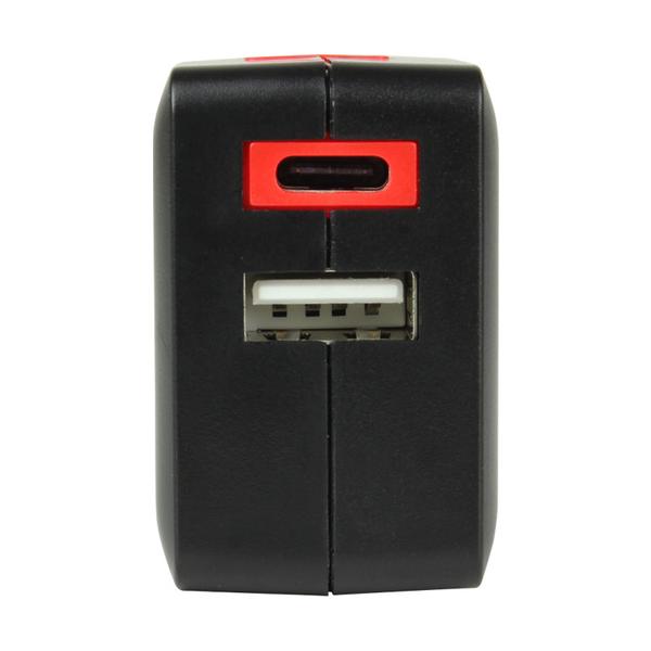 - イツワ商事 MCAC2101BR PD20W対応 TYPE-C1ポート/USB1ポート AC充電器 コンパクトタイプ 計3.1A 黒赤 500