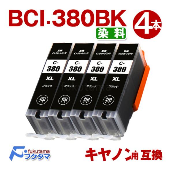 純正同様にお使いいただける キヤノン BCI-380XLBK 4本セット 染料 大容量 の互換インクカートリッジです。