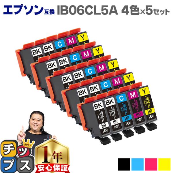 純正同様にお使いいただける エプソン互換 IB06CL5A互換 4色セット(シアン・イエロー・マゼンタ各1本+ブラック2本) の互換インクカートリッジです。