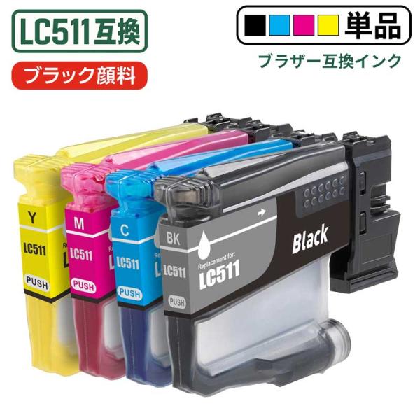 【互換品】LC511-4PK 単品自由選択 ブラザー 互換インク 顔料ブラック 最新チップ 1年保証 DCP-J529N J916N J929N