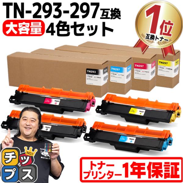 純正同様にお使いいただける TN-293-297 ブラザー用 互換トナーカートリッジ TN-293BK TN-297C TN-297M TN-297Y 4色セット です。