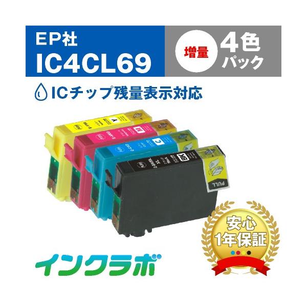 EPSON エプソン IC4CL69L(4色パック増量)対応の互換インクカートリッジを格安で販売しております。