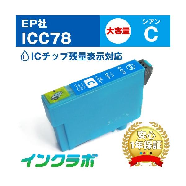 EPSON エプソン ICC78(シアン)対応の互換インクカートリッジを格安で販売しております。