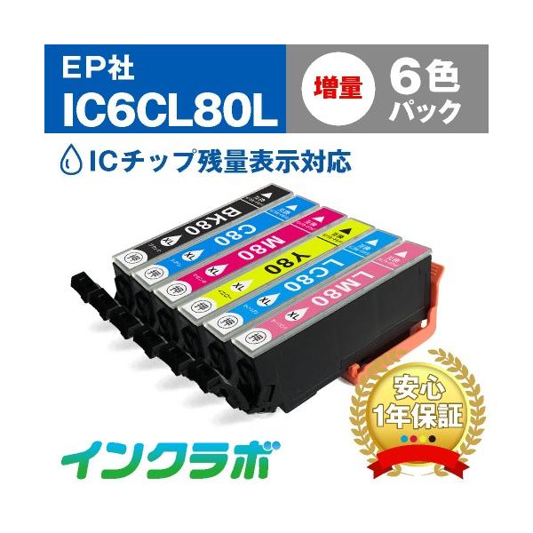 EPSON エプソン IC6CL80L(6色パック増量)対応の互換インクカートリッジを格安で販売しております。