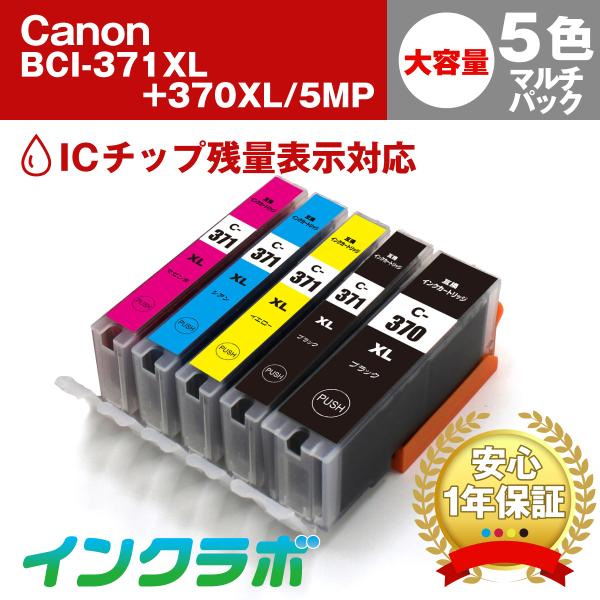 BCI-371XL+370XL/5MP 5色マルチパック 大容量×5セット Canon キャノン 互換インクカートリッジ プリンターインク ICチップ・残量検知対応