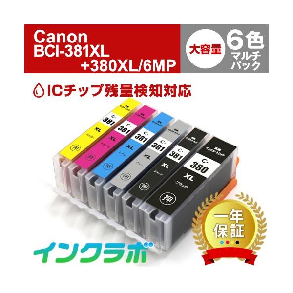 Canon キャノン BCI-381XL+380XL/6MP(6色マルチパック大容量)対応の互換インクカートリッジを格安で販売しております。