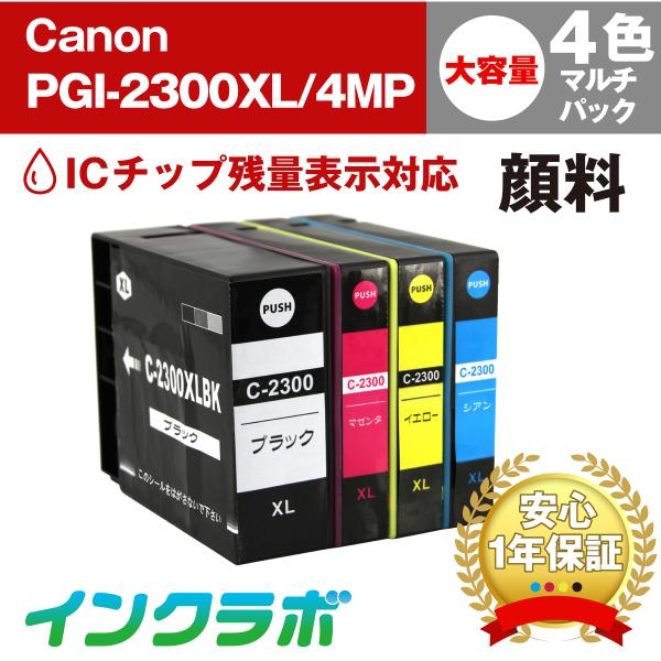 Canon キャノン PGI-2300XL/4MP(4色マルチパック大容量)対応の互換インクカートリッジを格安で販売しております。