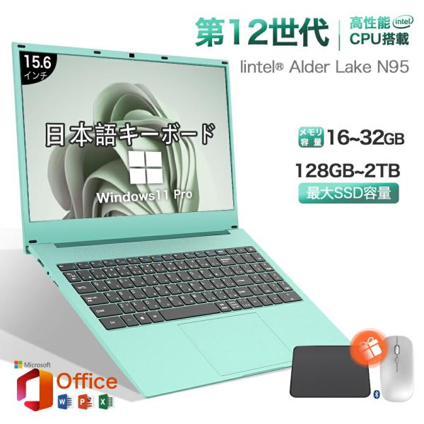 ノートパソコン Office付き 新品 パソコン 第12世代 Intel AlderLake N95 メモリ16/32GB DDR4 SSD 128GB~ 2TB Windows11 15.6型 大画面 IPS液晶 フルHD Win11