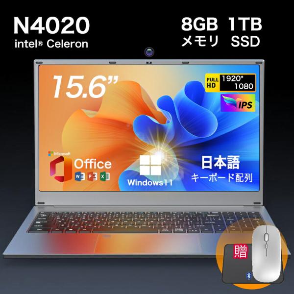 ノートパソコン office付き パソコン Win11 第11世代 intel celeron N4020 メモリー 8GB 高速 SSD128~1024GB 15.6インチ IPS フルHD液晶 日本語キーボード テン