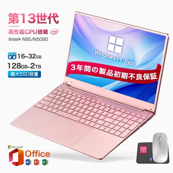 ノートパソコン Office付き 新品 パソコン 第12世代 Intel AlderLake N95/Celeron N5095 メモリー 16/32GB DDR4 SSD 128GB~2TB Windows11 15.6型 大画面 IPS液晶