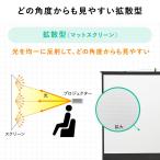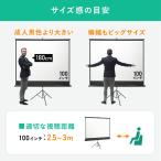 スタンド式のプロジェクタースクリーン。100インチ。三脚一体型。コンパクトに収納でき持ち運びも簡単。プレゼンやホームシアターに。