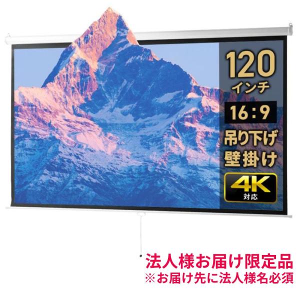 プロジェクタースクリーン 120インチワイド 4K 高画質 巻き上げ 吊り下げ 天吊り ロール式 壁掛け 16:9 EEX-PST3-120HDK-KK 法人様限定 代引き不可
