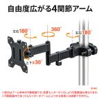 支柱に液晶ディスプレイを1画面設置できるポール取付けタイプのモニターアームです。32インチまで対応。アームの長い4関節タイプで、モニターの上下・左右調整や回転も可能です。