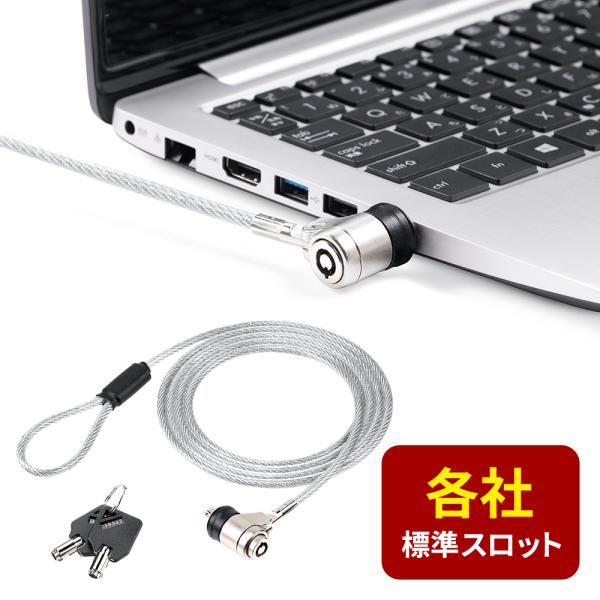 - 標準スロット(ケンジントン)に対応したセキュリティワイヤーです。<特長>●ノートパソコンや液晶モニターに搭載されている標準スロット(ケンジントン)に対応したセキュリティワイヤーです。●ワイヤーを机の脚や柱にくくりつけることでパソコンの盗難を防ぐことができます。●シリンダ部分はスイングできるので、ワイヤーに負荷がかかりにくく、取り回しがしやすいです。●鍵穴が上向きについているので、開錠しやすいです。●機器を傷つけないビニールコーティングのワイヤーです。●マスターキーに対応しています。<仕様>■シリンダ錠サイズ:約W17×D17×H29mm■製品重量:約93g■パッケージ形状:ビニール袋■ワイヤー長:約1.5m■ワイヤー直径:約4.4mm■取り付け可能スロット名称:ケンジントン(標準:7×3)■対応機種:標準スロットを持つパソコン■ワイヤー部材質:亜鉛(ビニールコーティング加工あり)■セット内容:本体×1、鍵×2■マスターキー対応:対応■鍵の種類:100種類■本体形状:一体型■保証期間:初期不良のみ■原産国:台湾■取扱説明書:あり(日本語)・小口輸入品につき、運搬の際製品、箱などに汚れ、キズができる場合がございます。・DELL・hpなどが発売する一部のノートパソコンの小型セキュリティスロット(約3.2×4.5mmまたは約3.2×5.4mm)には対応していません。<関連キーワード>ワイヤーロック 防犯 セキュリティーワイヤー 鍵 シリンダー錠 PC パソコン モニター 盗難防止 ケーブル長1.5m マスターキー対応 シリンダー錠 PC マスターキー対応 セキュリティコード ロックワイヤー パソコンワイヤー仕様ちがい・セット品ノーブルロック対応・シリンダ錠・単品ノーブルロック対応・シリンダ錠・10個セットノーブルロック対応・ダイヤル錠・単品ノーブルロック対応・ダイヤル錠・10個セットナノセーバー対応・シリンダ錠・単品ナノセーバー対応・シリンダ錠・10個セットナノセーバー対応・ダイヤル錠・単品ナノセーバー対応・ダイヤル錠・10個セット標準スロット対応・シリンダ錠・単品標準スロット対応・シリンダ錠・10個セット標準スロット対応・ダイヤル錠・単品標準スロット対応・ダイヤル錠・10個セット