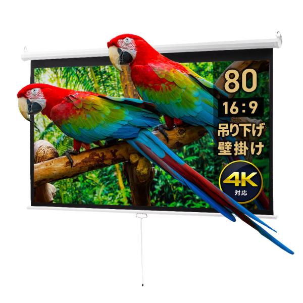 プロジェクタースクリーン 80インチ ワイド 吊り下げ 壁掛け 4K 高画質 手動 フィルム ロール式 巻き取り アウトレット
