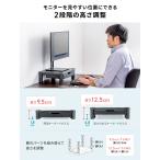 A4用紙が入る引き出し付きの、2段階高さ調整できるモニター台。