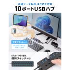 USBハブ 10ポート ACアダプタ付 個別スイッチ USB3.2高速 セルフパワー 充電 通信 EEX-HBA01BK