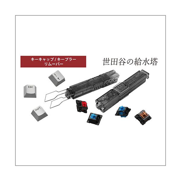 - ノスタルジックな佇まいをまとう、キーボード用メンテナンスツール 【世田谷の給水塔/AR-REMOVE】 キーキャップ外しとスイッチプラー機能を統合した2-in-1仕様で、日々の清掃からカスタマイズ作業まで効率的にこなせるアイテムです。サイズは約109×19×18mm、23gと軽量・コンパクトで、デスク脇やツールケースに収納しても邪魔にならない扱いやすさを実現。どこかノスタルジックな雰囲気をまとうデザインは華美すぎず、けれど個性のあるその佇まいは、デスク周りにひっそりと存在感を添える名建築のよう。そんな「給水塔」のカラーは夜を思わせるブラック、夕暮れのピンク、朝焼けのパープルの3色展開。 特徴 ・キーキャップ外し+スイッチプラーの2 in 1設計 キーボードのメンテナンスに必要な2つの作業を1本に集約 キープラー外しはプッシュリリース式で使えばわかる気持ち良さ ・軽量23g・手に馴染むコンパクトボディ 約109×19×18mmという扱いやすいサイズにより、日常的な清掃作業からカスタマイズまで快適にサポート ・デスクに馴染む、控えめで個性的なデザイン 直線と曲線が調和したフォルムは、どこか懐かしさを感じさせつつ、ガジェットらしい洗練も両立。使わないときも「置いてある姿」が様になるツール ・イメージの異なる3色展開 ブラック:静かな夜を思わせる落ち着いた深み ピンク:夕暮れの空を映した柔らかな色味 パープル:朝焼けの寸前の空を感じさせる美しいトーン デスクやキーボードの雰囲気に合わせて選べます。 キーキャップが外せるキーボードでもキープラーは半田付けされている場合が ございますので必ず工具で外せるモデルかご確認の上、ご利用ください。