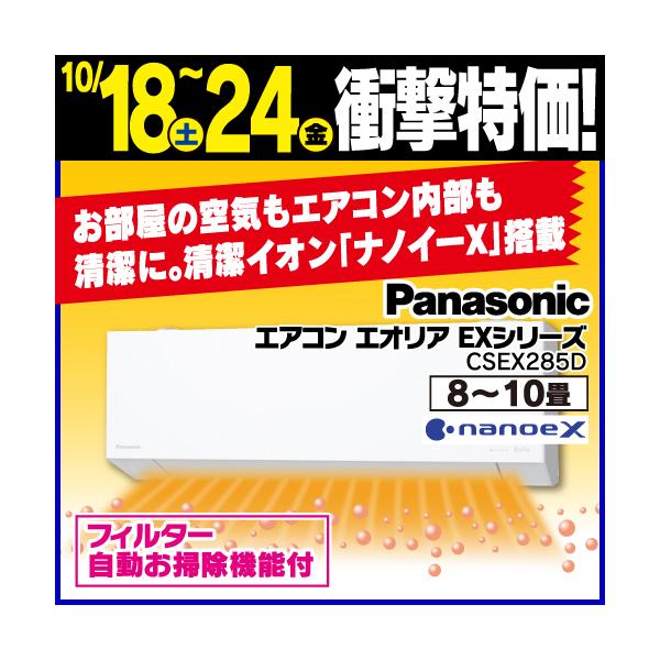パナソニック エアコン 10畳 ナノイー搭載 奥行コンパクト 掃除機能 AIセンサー エオリア EXシリーズ CS-EX285D 2025年モデル