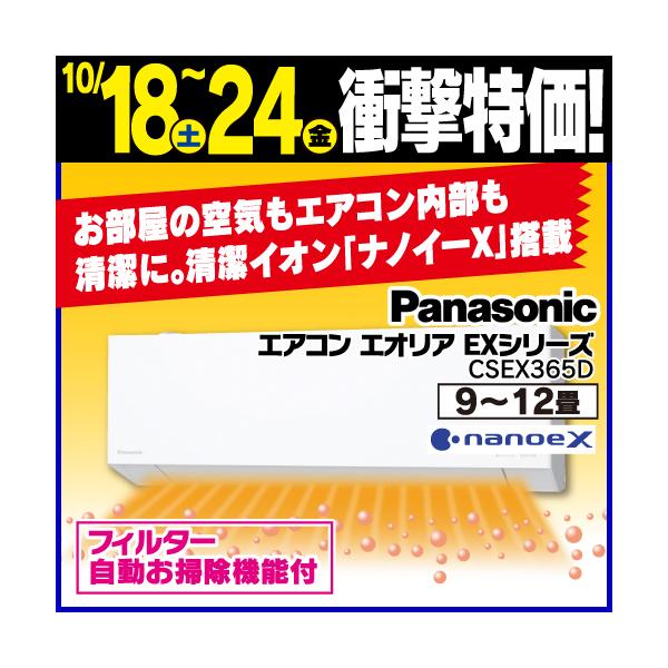 パナソニック エアコン 12畳 ナノイー搭載 奥行コンパクト 掃除機能 AIセンサー エオリア EXシリーズ CS-EX365D 2025年モデル