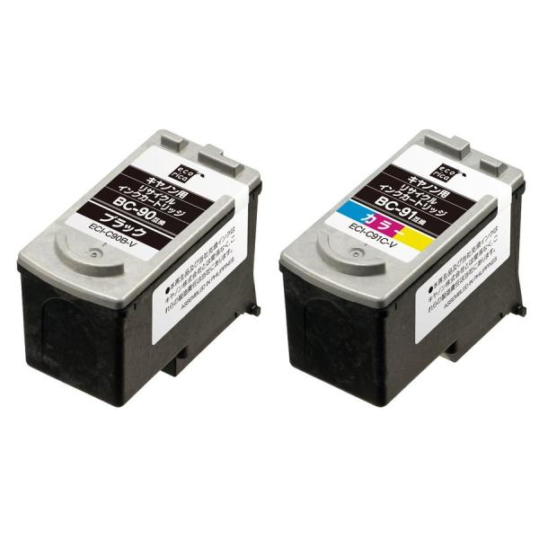 エコリカ キャノンインク BC-90(ブラック×1)+91(カラー×1)計2個(CANONインク)(PIXUS iP1700 iP2200 iP2500 iP2600 MP170 MP450 MP460 MP470:ピクサス)
