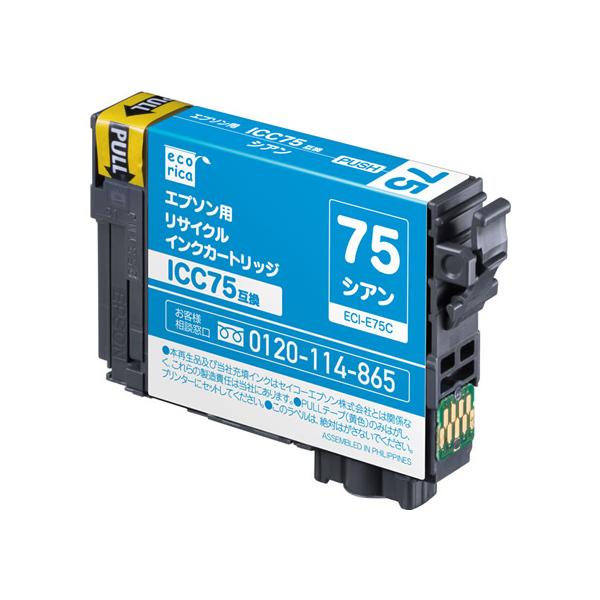 エコリカ エプソン用リサイクルインクカートリッジICC75 エプソン EPSONシアン エコリカ リサイクルインクカートリッジ トナー
