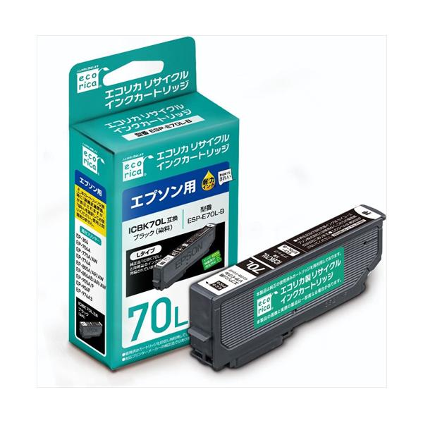 エコリカ インク ecorica エプソン ICBK70L対応 リサイクルインク ブラック ESP−E70L−B 残量表示対応 リサイクル