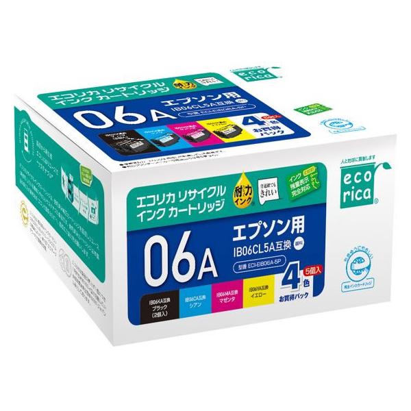 エコリカ リサイクルインク 4色(5本)パック ECI-EIB06A-5P エプソン EPSONマルチパック エコリカ リサイクルインクカートリッジ トナー