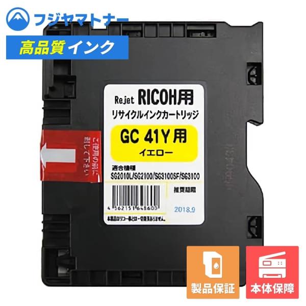 【国産再生品】SGカートリッジ GC41Y 515810 イエロー リコー Ricoh用 リサイクルインク リジェット ER-41Y