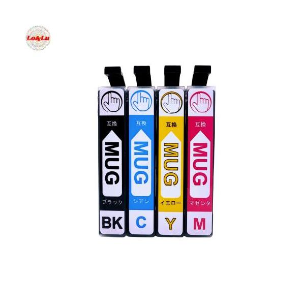 【個別包装】パッケージ内容:インク4本。ブラック(MUG-BK)1本・シアン(MUG-C)1本・マゼンター(MUG-M)1本・イエロー(MUG-Y)1本合計4本パック。